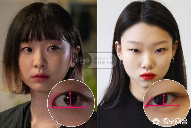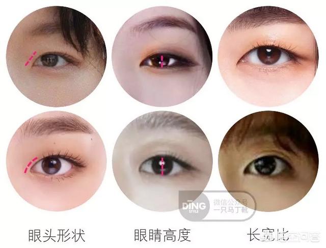 这里的尖和圆怎么判断呢?可以参考内眼角的形状、眼睛的高度、眼型的长宽比这三个要素: