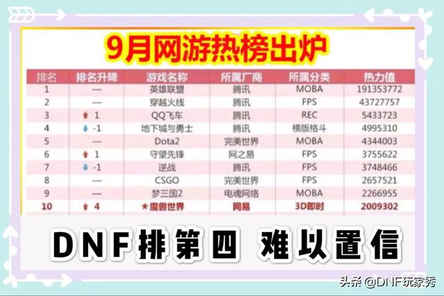 没想到大家都对9月网吧游戏热度榜,DNF排名第4,首次无缘前3,地下城真的要黄了,你如何评价?感兴趣,不过这这篇解答确实也是太好了