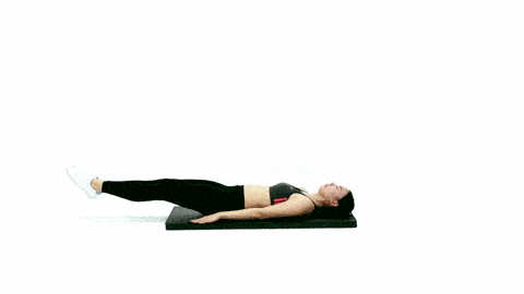腰部紧贴地面不悬空。腹横肌吐气发力抬腿。水平躺在瑜伽垫上。可用双手垫在腰部的方式督促紧贴地面。双腿并拢笔直高抬需要用腹横肌发力。吐气肌肉收缩缓慢抬高至95度停住。