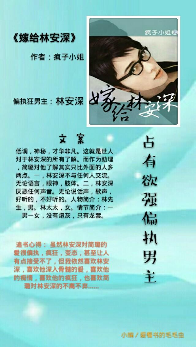 刚好今天收集了五本。男主是偏执狂。病娇。占有欲强。没女主不行。爱到骨子里的小说。喜欢的快抱走了~1.书名:《攻略蛇精病