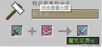 7丶将工具放在左侧。附魔书放在右侧【附魔书可通过书本用附魔台附魔获得】。即可为工具附魔(注:每个工具都有每个工具特定附的魔。有些魔是附不了某些工具的(如:“亡灵杀手”能附剑;“保护”不能附稿子)。\r