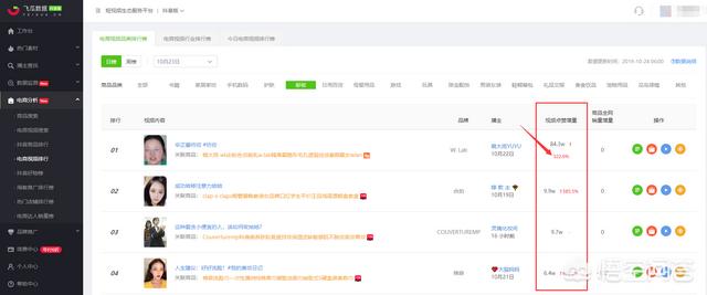 飞瓜数据关联商品的电商视频排行榜。不仅可查看不同商品类型的抖音电商视频。快速发现优质带货视频和优质带货播主。还可查看商品分析。深入了解电商视频的不同带货力。