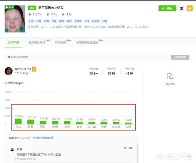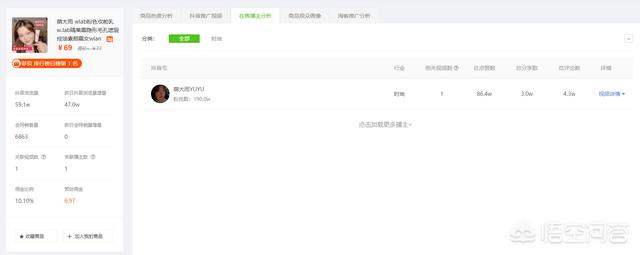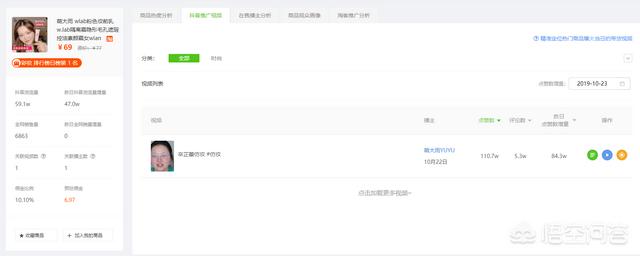 Step4:分析推广视频播主情况。想要知道这款热门视频是不是推广商品中最好转化数据。可以点击“抖音推广视频”。从点赞数、评论数以及昨日点赞数增量上看到整体播主推广该商品的数据信息。