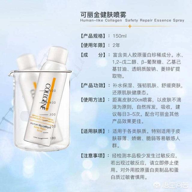 里面含有类人胶原蛋白成分。补水保湿效果很不错。质地和水差不多。就是水状喷雾。但是保湿度还是有的。重点是喷头居然做得相当不错呀。喷出来的水雾相当细腻舒服。很均匀。算是最近爱上的喷雾之一了。