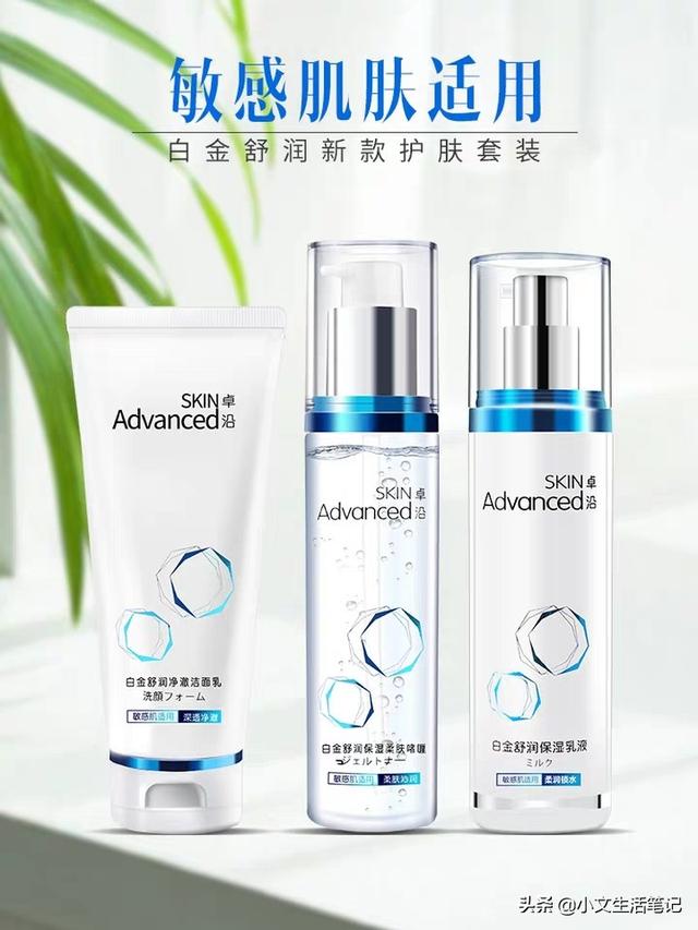 4.屈臣氏白金舒润套盒(2014年)。这个是敏感肌也可以用的。那时候。我的脸特别容易起红苞。他们说是皮肤换季性敏感。推荐我是用的是这款护肤品。使用感受:水是啫喱妆。很容易化开。乳液有点点油。啥感觉也没有。就和抹了水一样。敏感肌能用。无添加剂。可以给皮肤补水。