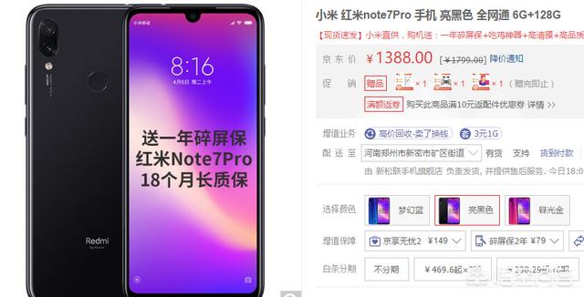 二。红米note7pro系列。只有6G+128G内存版本。价格为1399元的价格。