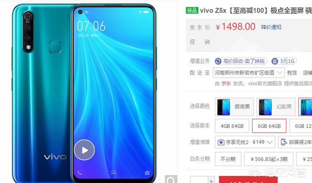三。vivo Z5x系列。高通骁龙710处理器。1498元的价格6G+64G内存配置。
