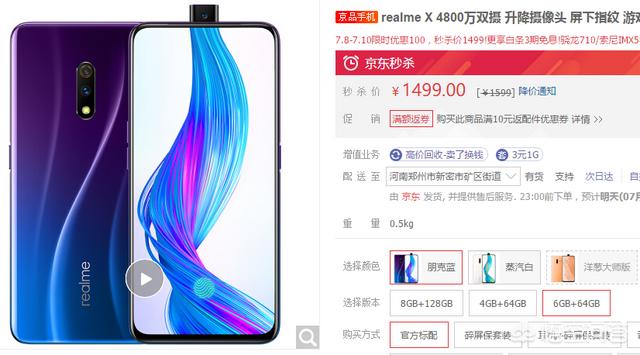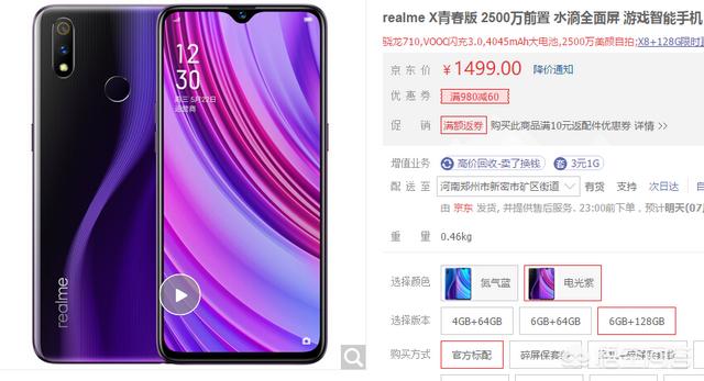 1.价格优势:realme X青春版本。6G+128G内存在1400元上下的位置。高通骁龙710处理器。电池容量为4050mAh。拍照方面的是前置2500万像素。后置镜头为1600万像素+500万像素。