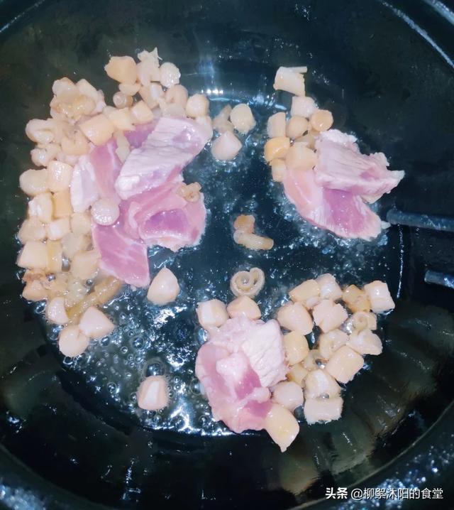 7、加姜片。葱段和瑶柱。