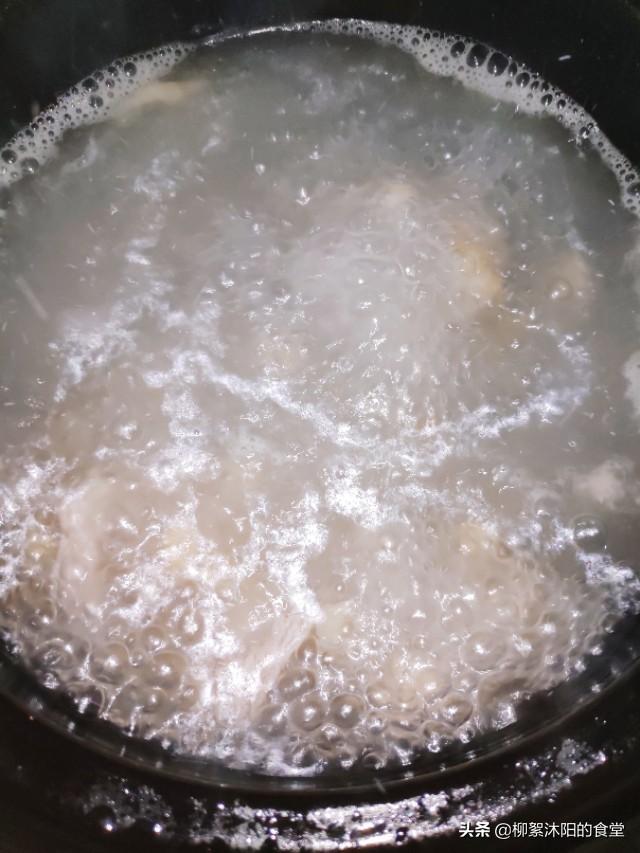 4、加入姜片。葱段。入锅中焯水之后洗净。