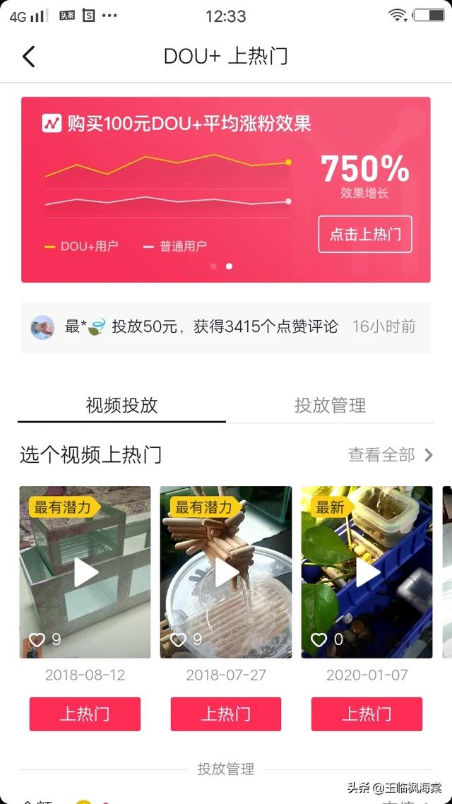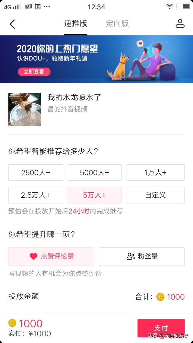 打开抖音点我。然后点右上角三横。然后点服务。上热门。想推广哪个就点哪个。里面有推广人数价格。50-1000元不等。我的因为没做过推广。观看量一直上不去。应该是官方给限制了