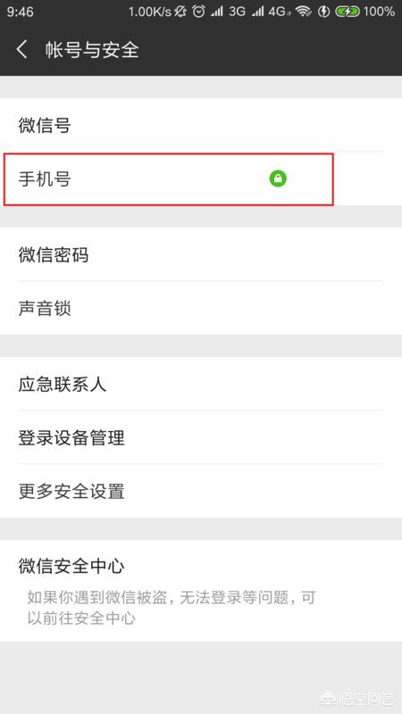 3、在账号与安全设置页面中。点击找到“手机号”设置项。将该手机号码与微信账号绑定;