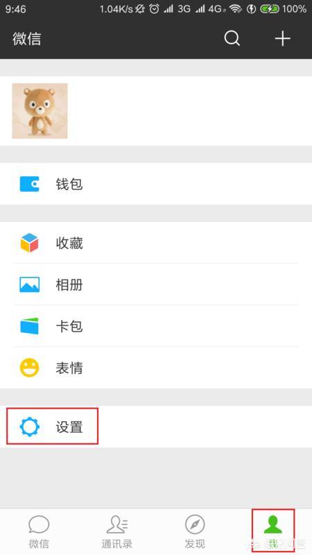 1、打开微信应用主页面。点击页面底部“我”菜单。选择“设置”选项;