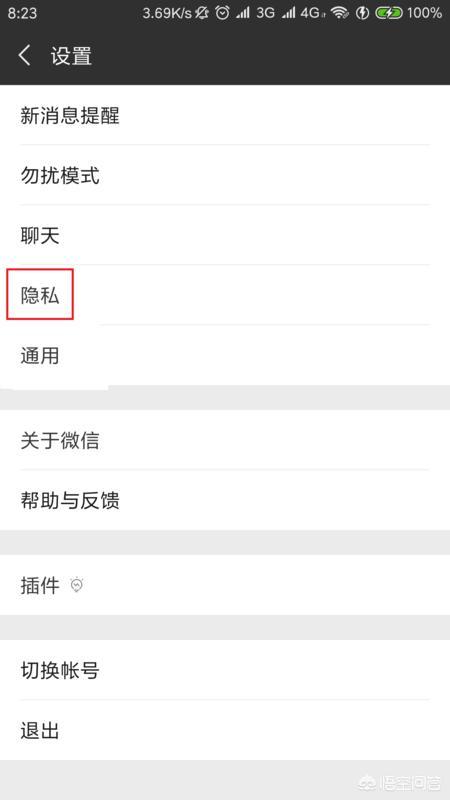 4、手机号码绑定成功之后。点击微信设置页面中的“隐私”设置项;