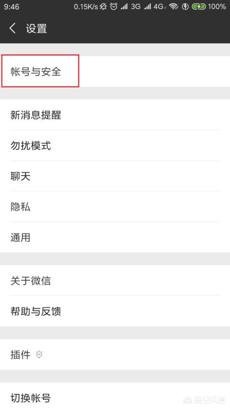 2、接下来。打开的微信应用设置页面中。点击“账号与安全”设置项;