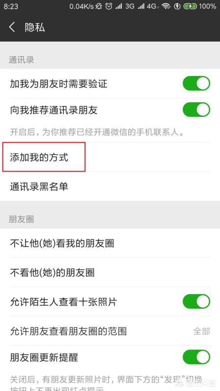 5、在隐私设置选项中。点击选择“添加我的方式”设置项;
