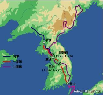 面对日军的侵略。朝鲜国王只好向当时明帝国的万历皇帝求助。而且。日军一度进攻到明朝边境地区。万历皇帝命辽东总兵李如松为提督。让其率领4万士兵跨过鸭绿江。进入朝鲜境内支援朝鲜抗击日军。