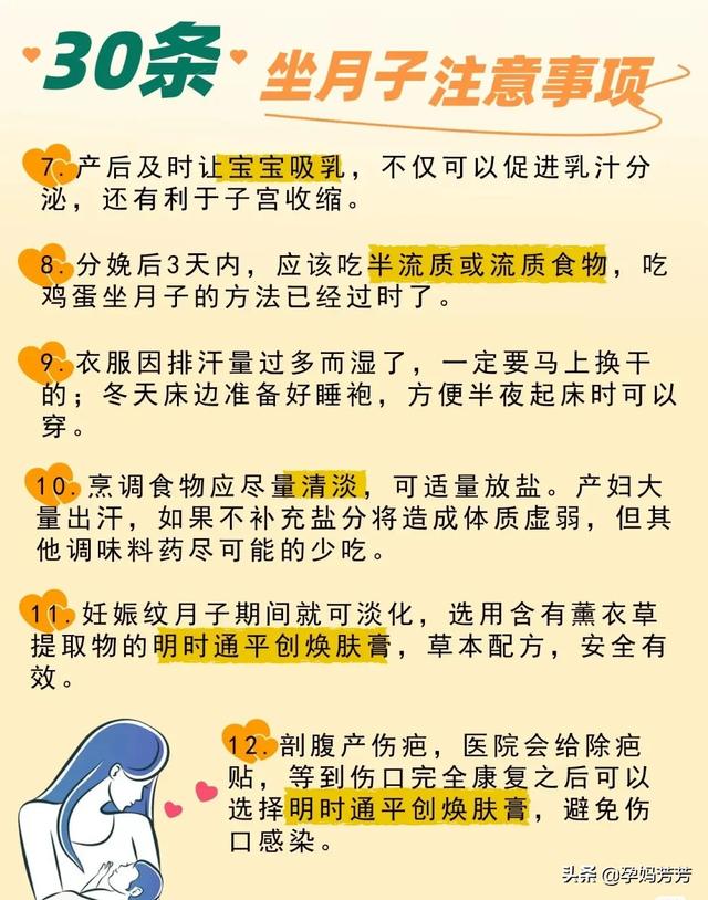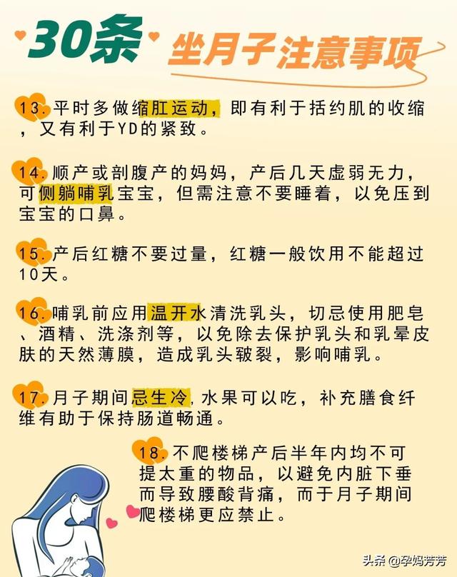 科学坐月子。远离月子病。30条做月子注意事项1.月子期可不止30天。整个产褥期需6-8周。也就是42-56天。2.恶