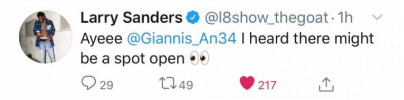 呆了一段时间的诗与远方。2017年3月。桑德斯短暂签约骑士。但因为表现不佳被裁。从此再也没有球队愿意签约他。这时候桑德斯急了。开始四处求职。但根本没有球队要他。为此他还在推特上艾特字母哥。不过人家根本不搭理他。