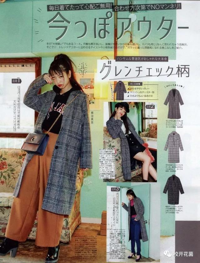 想要扮嫩的少女就用短款的格纹外套搭配宽松的百褶裙。鞋子的话选雪地靴or球鞋。