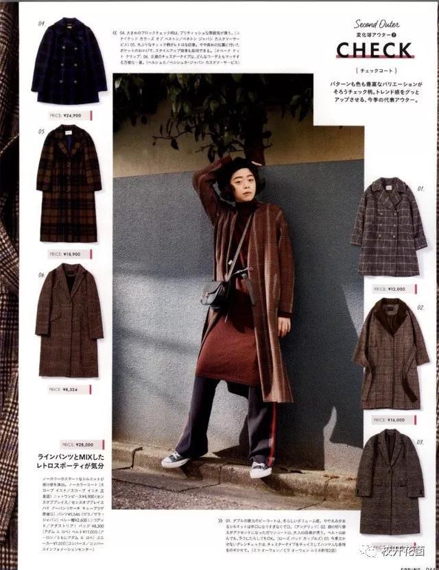 和黑灰色的格纹相比。今年更流行夸张的大色块格纹大衣。