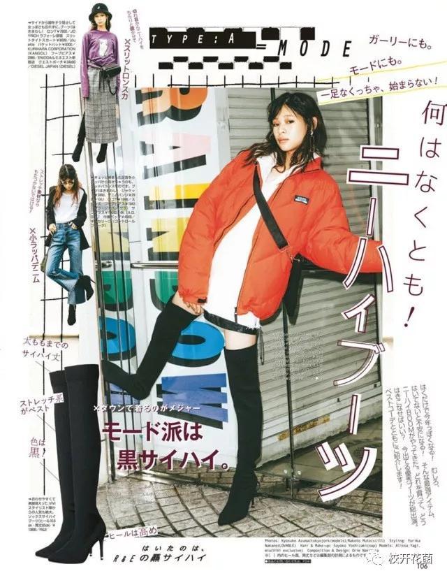 与黑色过膝靴的搭配。一点都没有羽绒服之前的厚重沉闷。红黑的碰撞反而很性感。