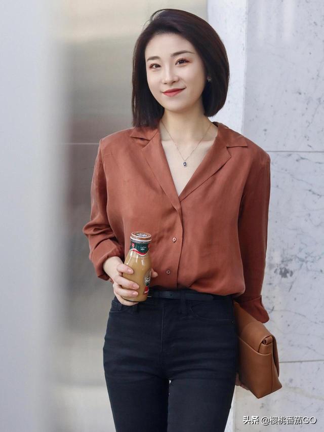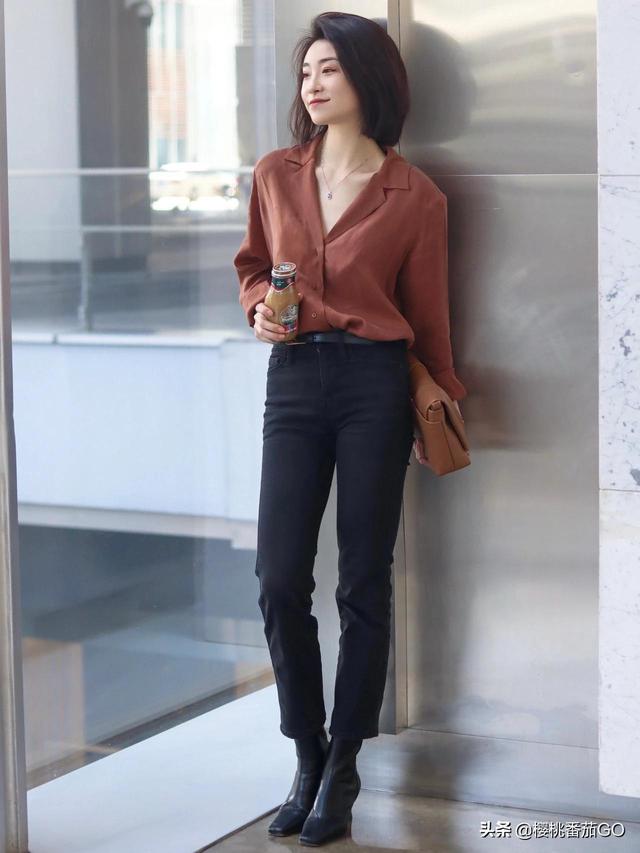 简约的通勤风。这件奶奶风外套也可以搭得很时尚不是?