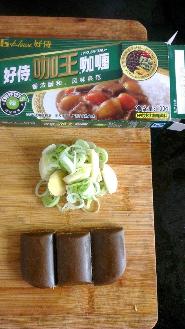 2.土豆。胡萝卜切滚刀块和咖喱等食材