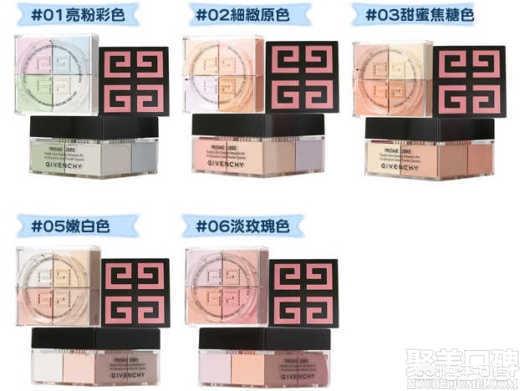 3纪梵希四宫格散粉。比较大牌价位中上的。颜色具有修饰肤色的作用。出了好几个色系。粉色适合脸暗黄无光泽的。紫色适合脸上有红血丝的 。我自己用的紫色!