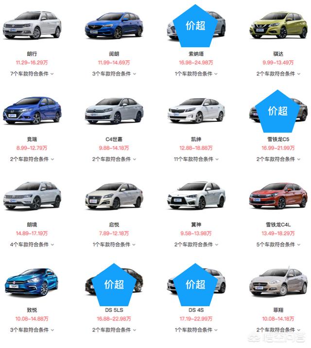 所以。如果你考虑¥15万落地。那么你可以选择的车型是: