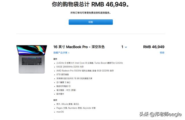 3:内存:Mac Book Pro 16寸标配16GB 2666MHz DDR4 主板集成内存。还可选配 32GB 或 64GB 内存;