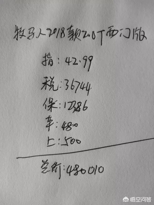 售价方面。2018款牧马人低配的撒哈拉2.0t两门版。裸车报价在42.99万。优惠幅度不大。全部落地再加购置税37060。车船税480。强险950。商业险11808。上牌500。共合计48.07万左右。