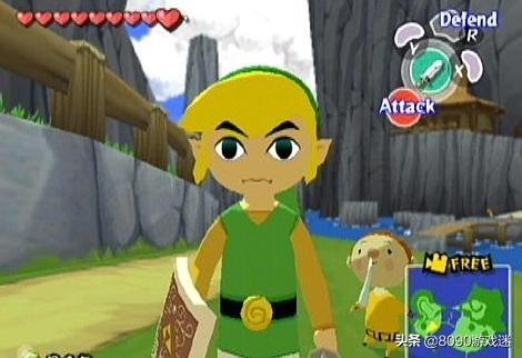 看看这满脸的不高兴吧。估计林克也是很想换一身衣服的。这个版本没有鼻子吗?我玩的时候也没注意。好像是有的呀。NGC版本的画风是我最喜欢的了。