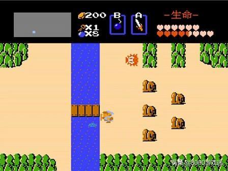这是第一代的塞尔达。可以看出以后的游戏雏形差不多就是这个样子了。设计一直沿用了下去。这个版本的林克是灰色的。原版也是绿色的哦。虽然形象一直在变。唯一不变的可能就是林克的小绿帽了。一代中的形象看起来就像是白雪公主中的小矮人一样。矮胖短粗。一点美感都没有。