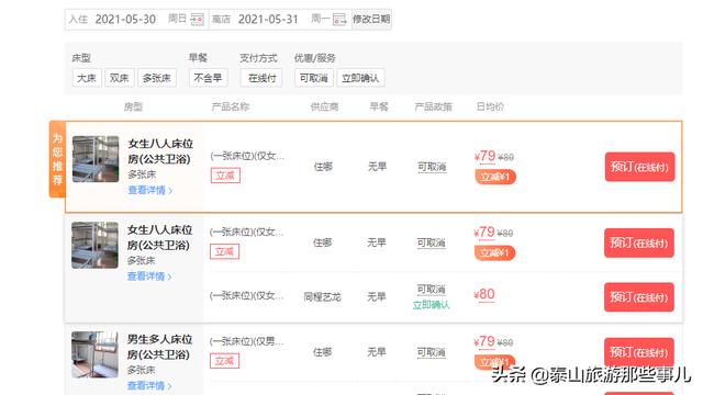 住宿真的很省钱!限于泰山顶地面资源有限。不可能提供更多的地皮盖房子。因此宾馆相对较少。总共400个房间。住宿人数1000多人。物以稀为贵。节假日期间价格也不低。有1000多元/晚。但相对于其他景区价格还不算贵。你能想象在泰山顶也有80元/人·晚的宾馆房间吗?中天门的宾馆最便宜的只要50元/晚。是不是很省钱!