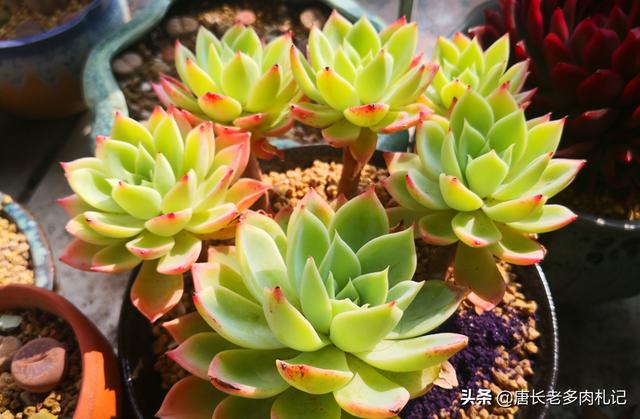 不过题主真会挑品种的。昨天挑的是冰梅和贝瑞。而今天挑的则是三色堇。虽然前后者出状态都很漂亮。但都是非常难以养出状态的多肉品种。我也很喜欢三色堇。即便现在我已经不再入手景天类多肉了。但还是跟朋友要了一棵小侧芽来养。只是因为养护环境的关系(秋冬季节平均一个月3天晴天都不到)。哪怕我用90%的颗粒来控养。它还是一直绿兮兮的。最多也就是变成了黄绿色而已。