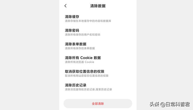 如果经常在手机上使用浏览器。浏览器也会产生大量缓存垃圾。所以我们也需要定期清理浏览器的缓存。一般在浏览器设置里。都有清除数据的功能。大家定期清理就可以了。