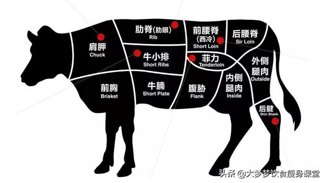 其实这些牛排的命名。都是外语翻译成中文的音译,代表着牛的不同部位