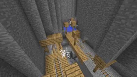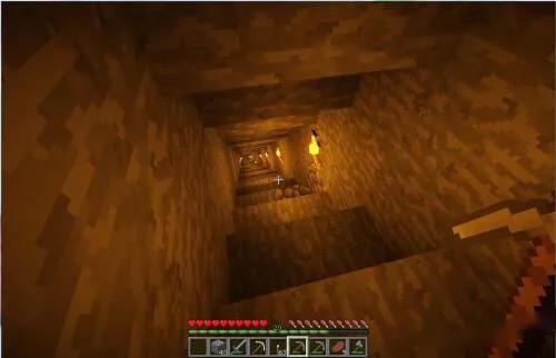 除了鱼骨矿坑。也有直接向下挖矿的。虽然这种方法可行。但是风险非常大。如果运气不好。就会掉入深谷或者岩浆池。之前的努力全部付之东流。但是你真的要采用这种方式挖矿。建议阶梯挖矿。
