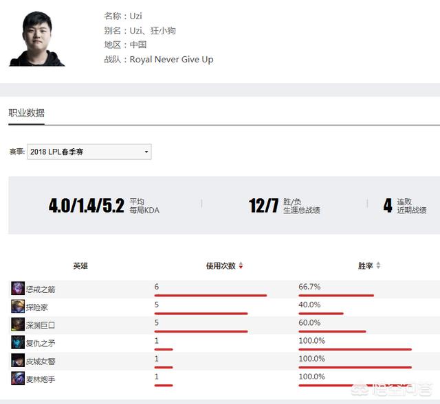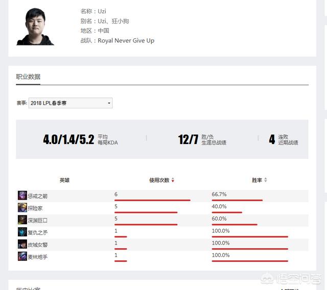 他的历史战绩跟UZI对比:(来源玩加赛事)