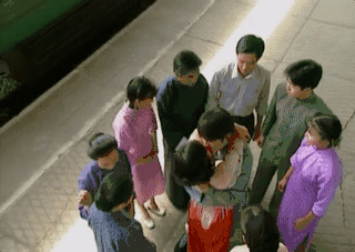 还记得《情深深雨蒙蒙》的那个车站吗?书桓因为跛脚的缘故。站不稳。站不稳怎么办呐?周遭的小姐妹们就围过来把书桓扶(推)起来。跟依萍接吻。