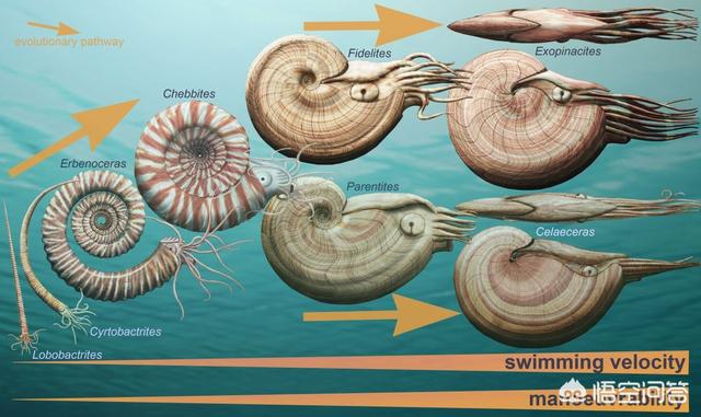 图注:鹦鹉螺亚纲的演化方向。图片来自网络