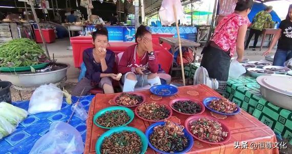 3.昆虫美食已经成为了他们餐桌的时尚。在首都万象。油炸蟋蟀和蚂蚱随处可见;