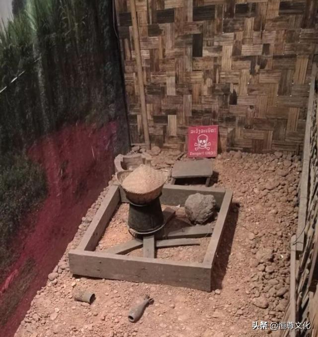 老挝还是一个地底下埋着8000颗地雷的国家。佛像与炸弹并存。苦难与真诚共处。这些炸弹是当年美国为了切断越共途经老挝补给线所设置的。在老挝的农村很多人都有与炸弹和平相处的经验。他们会把弹坑填补成天然的稻田鱼塘。把集束炸弹的大弹壳做成铁皮柱。用来支撑乡下随处可见的吊脚竹楼。或者在上面装上泥土养花种菜。还有些小炸弹壳会被做成煤油灯筒、炸弹铁皮做成饭勺。汤池锅碗瓢盆等等。