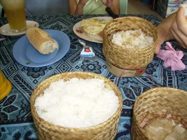 老挝的主食是糯米饭。这边人喜欢取一团糯米用手捏球球。捏好后Q弹Q弹的。口感非常不错。