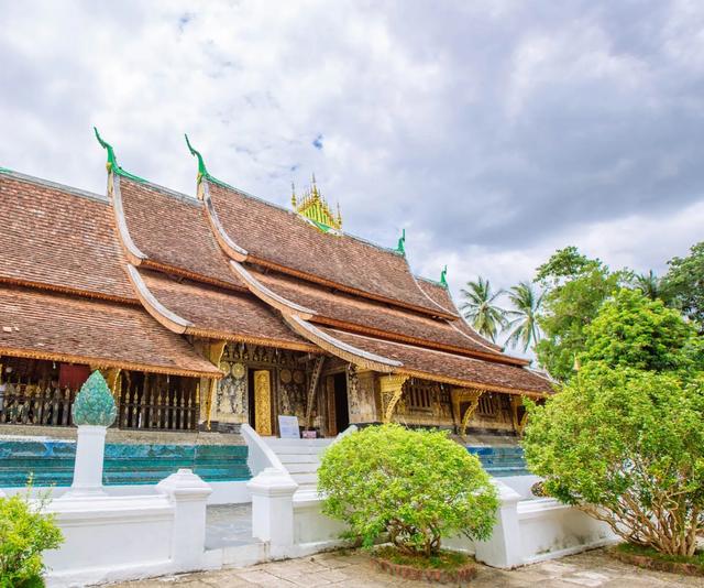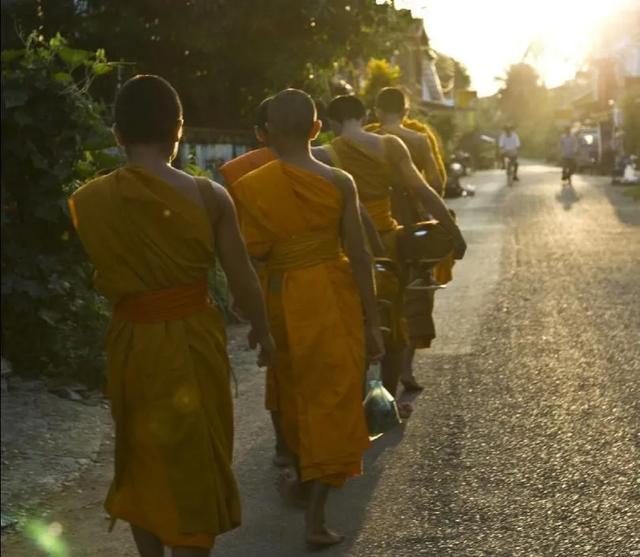 老挝城中最多的公共设施就是庙宇。每走过一个村你就能看到一个。平时白天人比较少。每天早上老挝人都会在家门口准备好食物。等待着僧人来化缘。老和尚走在前面。小和尚走在后面。这也是一种挺有意思的现象。
