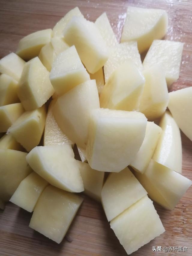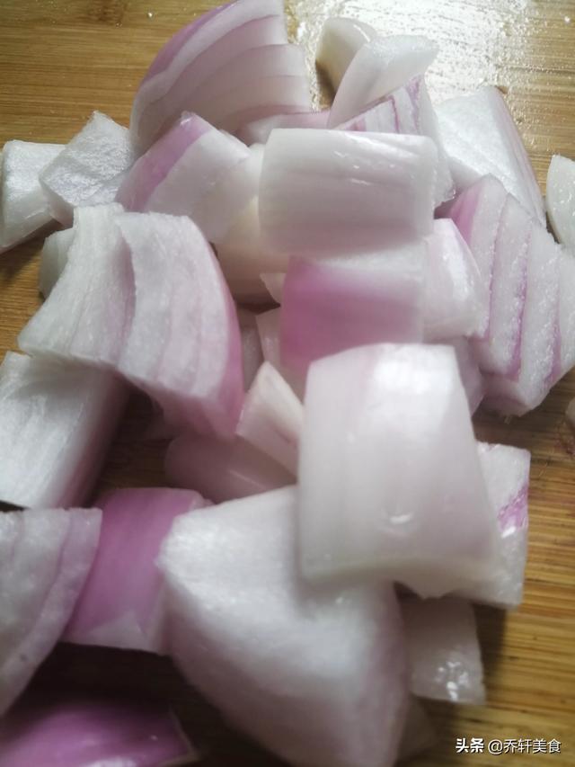 2.配菜有:马铃薯两个去皮切小块、香芹适量切段、洋葱半只切块、大葱适量切段和小葱花备用。