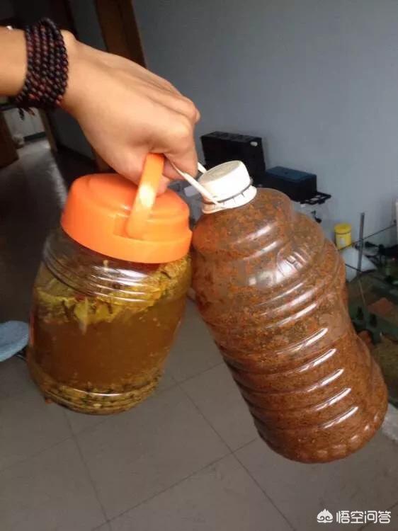 3、再加50度的曲酒、蜂糖、维生素B2搅拌均匀。如想针对鲤鱼的话可以加一瓶牛B鲤小药。然后密封放在阴凉处发酵。曲酒和蜂糖加的量适当就行。夏天发酵一个星期左右就可以使用。