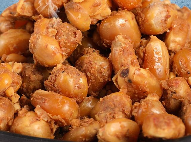 2、将泡好的老玉米放到锅里煮到刚裂开这样。然后就关火焖一个小时左右。玉米粒用手可以捏烂就可以了。然后倒出煮好的玉米粒等待凉透。