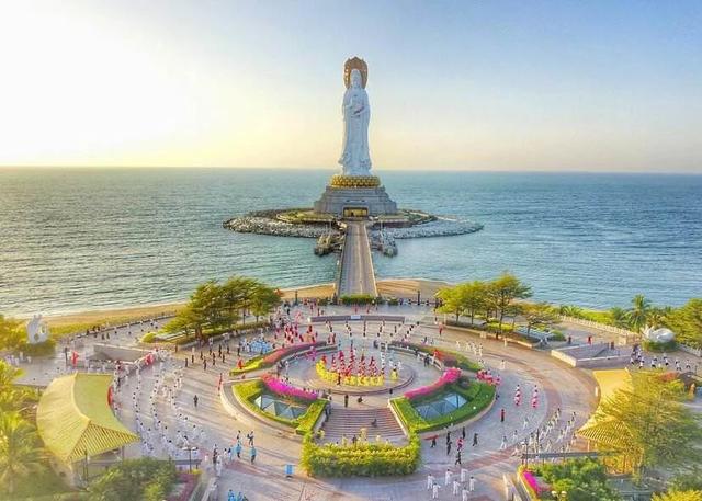 南海观音(老板去海口,我们自己玩的!去这个地方的人超级多,今天我们起的很早,哈哈!门口有面35一碗,我觉得还挺好吃的,没吃早饭的可以去哦!抱佛脚的人很多很多,但是这个地方拍照很美的,蓝天白云,阳光明媚!我忘记哪站下去,有一大片草地,大家有时间可以去拍照的,非常好看!